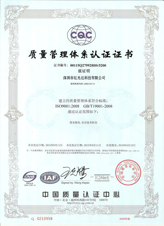 安全防范證書